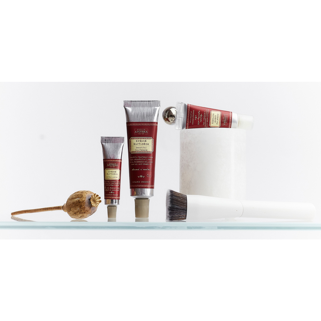 Kurtizány byly v dávných dobách vnímány jako dvorní dámy. Často byly obdařeny uměním duchaplné konverzace, schopností hrát na nějaký hudební nástroj anebo alespoň zpívat a tančit. Díky tomu dosahovaly také zajímavého politického vlivu. V 18. století (kdy se také datuje původ krému) zažily kurtizány a s ním spojené řemeslo obrovský rozmach. Aby byly neustále mladistvé, svěží a pro své nápadníky doslova „jako čerstvé broskvičky k utržení“, nanášely tento krém vždy ráno, po náročné noci. Krém se používal také přes den, kdy zkušenějším dámám propůjčil pel dívčí lehkosti a zahnal unavený výraz z tváře.