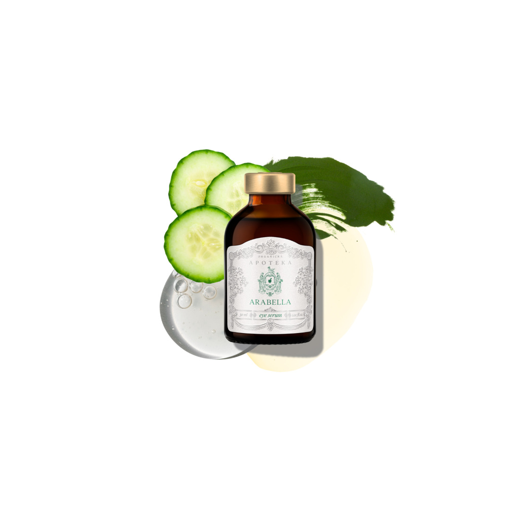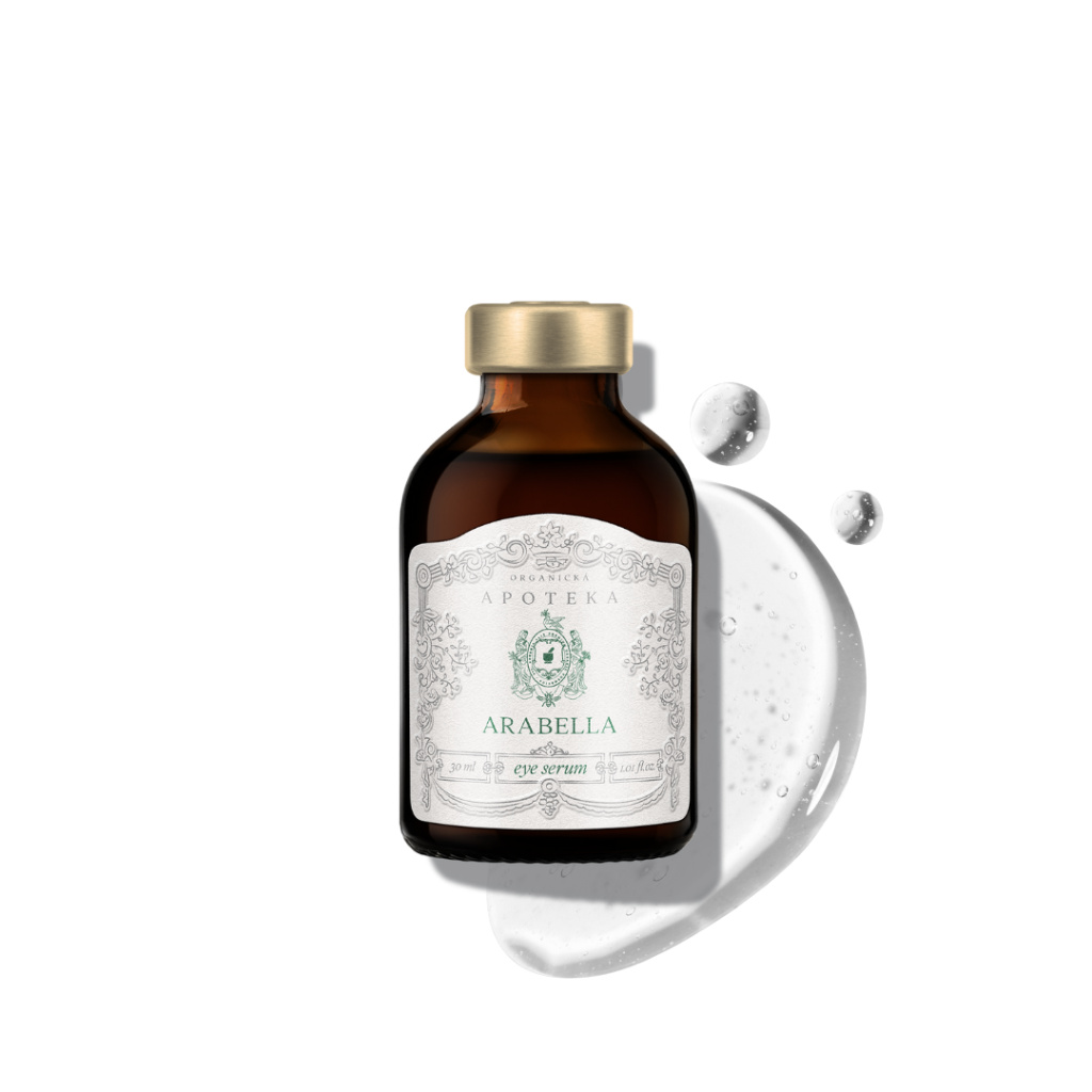 Sercem Arabelli jest moc wysoce skutecznych składników aktywnych, które widocznie wygładzają, rozjaśniają i pobudzają spojrzenie od pierwszego użycia. Kwas hialuronowy o niskiej masie cząsteczkowej wnika głęboko w skórę, intensywnie nawilża i wypełnia drobne linie, tworząc świeży i młodzieńczy wygląd, który utrzymuje się przez cały dzień. Ekstrakt z francuskiego ogórka natychmiast łagodzi i odświeża, widocznie redukując obrzęki i oznaki zmęczenia. Woda komórkowa jęczmienia, bogata w witaminy i minerały, wzmacnia barierę skórną, udoskonala strukturę skóry i zwiększa jej elastyczność. Dermochlorella, ekstrakt z zielonych mikroalg, wspomaga mikrokrążenie i pomaga redukować cienie i cienie pod oczami, pozostawiając skórę bardziej promienną i równą.