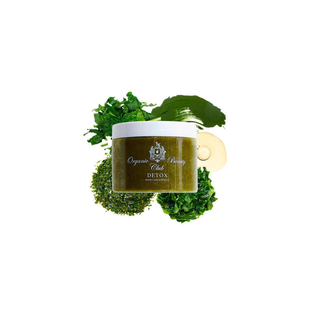Detox kúpeľový koncentrát kombinuje účinnosť prírodných látok, ktoré pomáhajú vyživovať, detoxikovať a regenerovať pokožku a zároveň podporujú celkovú duševnú aj fyzickú relaxáciu. Fucoreverse™, aktívna zložka z hnedých rias, posilňuje pokožku, chráni ju pred oxidačným stresom a pomáha oddialiť prejavy starnutia. Niacinamid prispieva k vyrovnaniu tónu pleti a posilneniu jej prirodzenej ochrannej bariéry. Morská soľ jemne čistí a dodáva pokožke cenné minerály na jej výživu. Špenát pokožku revitalizuje a zvyšuje jej pružnosť vďaka vysokému obsahu vitamínov a minerálov. Zelený čaj spolu s chlorellou pôsobia ako silné antioxidanty – upokojujú pokožku a chránia ju pred škodlivými vplyvmi okolitého prostredia. Každý kúpeľ sa stáva zdravým rituálom starostlivosti o telo i myseľ.